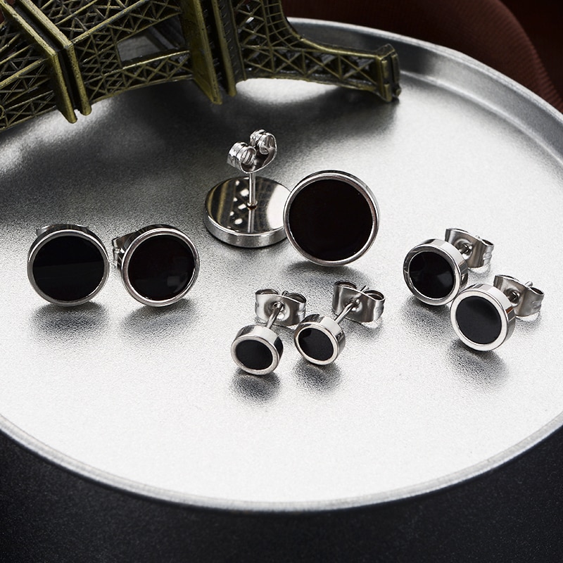Superbe paire de boucles d’oreilles pour homme très tendance disponible dans 3 configurations différentes: En argent avec le rond central noir, Noir avec le rond central blanc et doré avec le rond central noir.