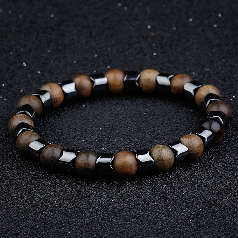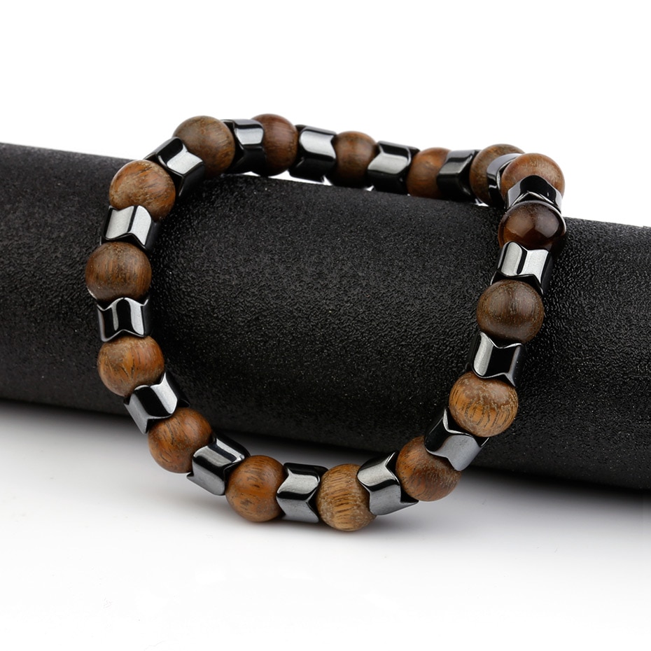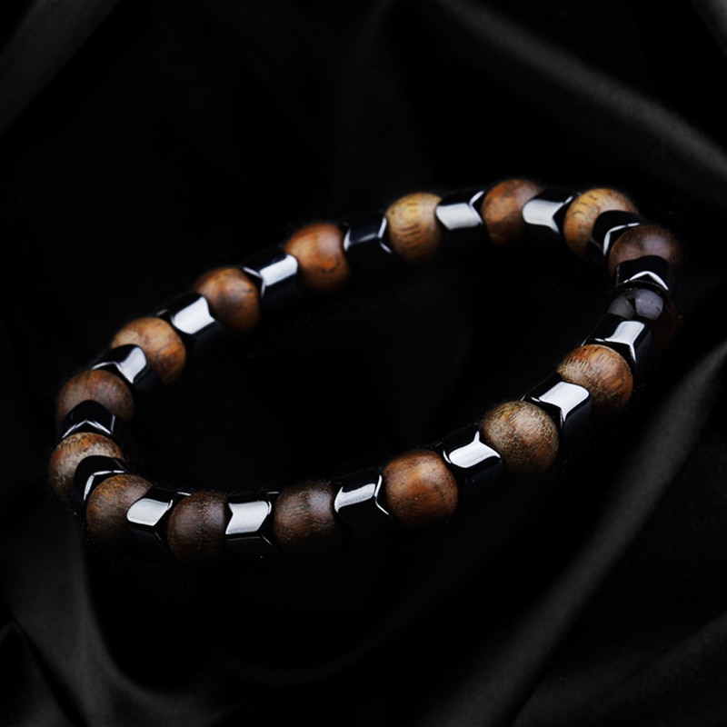 Superbe bracelet en bois et en hématite pour homme. Ce bracelet au look simple, épuré et écologique est disponible dans 5 tailles différentes pour être certain de trouver celle qui vous convient.