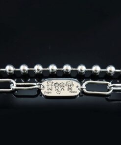 Les maillons sont de type chaîne avec une double forme : ronde et rectangulaire. Pas d’inquiétude à avoir concernant la longueur de ce bracelet, qui se règle jusqu’à 23 cm de longueur pour les poignets « plus costauds ».