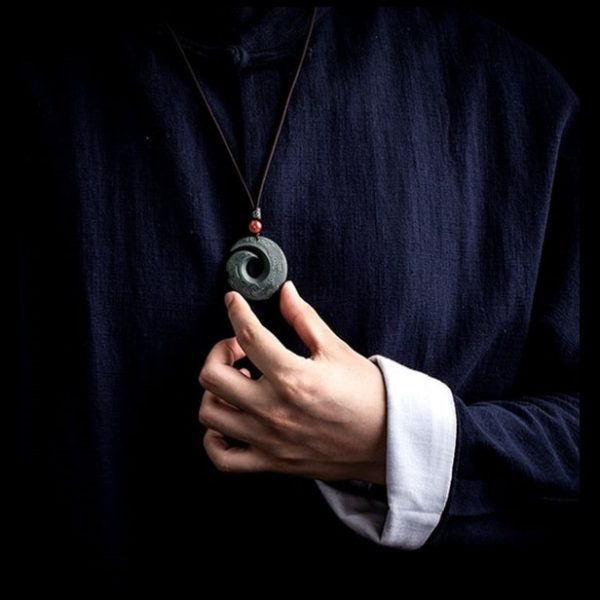 Matériaux : pierre de jade verte, corde