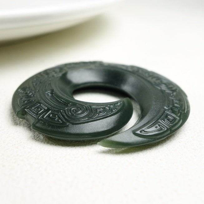 Il s’agit d’un bijou d’une grande splendeur, parfait pour les amoureux de cette pierre de jade aux nombreuses propriétés. On lui attribue notamment des capacités d’aide à la guérison (système urinaire, cardio-vasculaire et lutte contre les infections) et d’aide à la concentration en particulier pour la méditation.